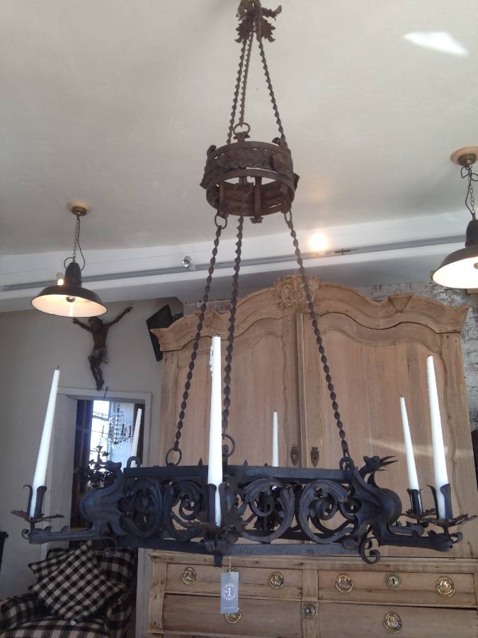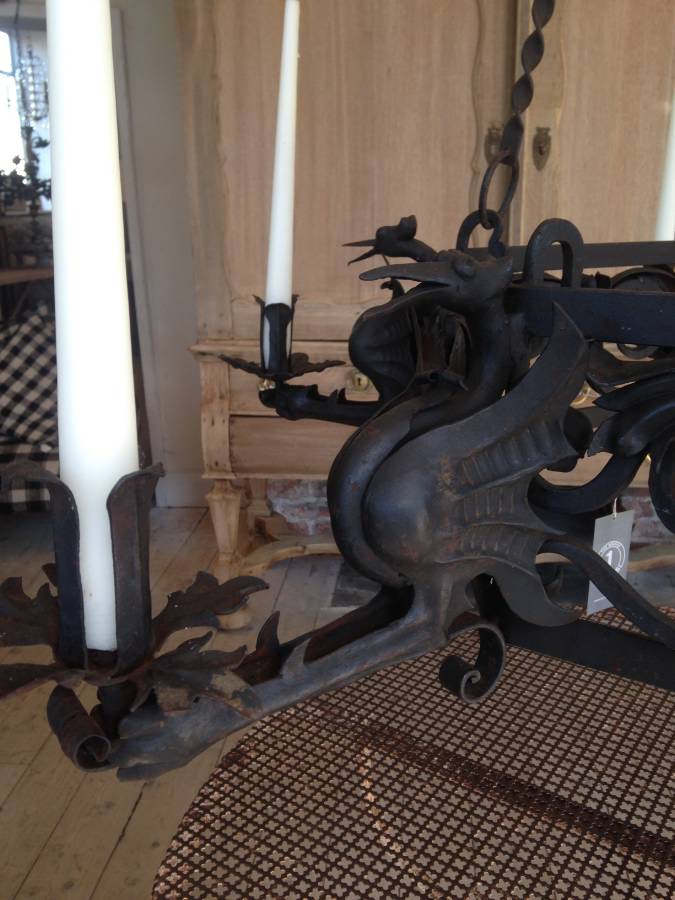 c1900 Italian iron dragon candelabra.